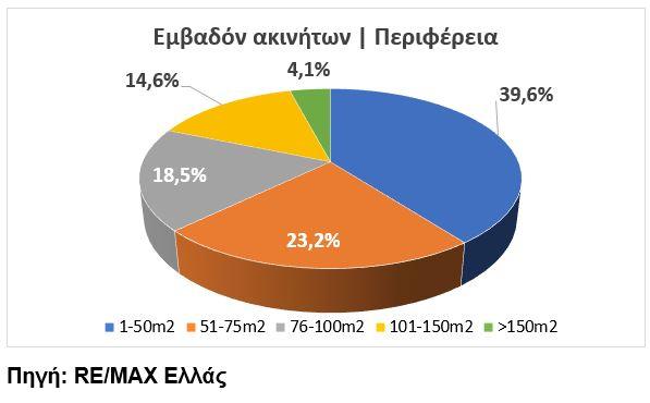 Στην υπόλοιπη Ελλάδα, σύμφωνα με τη RE/MAX Ελλάς, οι μισθώσεις αφορούν κυρίως μικρά και μεσαία ακίνητα, με το 39,6% των ενοικιάσεων να αφορά κατοικίες έως 50 τ.μ. και το 23,2% ακίνητα από 51 έως 75 τετραγωνικά μέτρα. Οι μισθώσεις σε κατοικίες από 76 έως 150 τ.μ. φτάνουν αθροιστικά το 33,1%, ενώ το ποσοστό των ακινήτων άνω των 151 τ.μ. είναι περιορισμένο (4,1%).