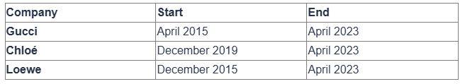 Οι Gucci, Chloé και Loewe είναι εταιρείες μόδας με έδρα την Ιταλία, τη Γαλλία και την Ισπανία αντίστοιχα. Δραστηριοποιούνται όλες στον σχεδιασμό, την παραγωγή και τη διανομή προϊόντων μόδας υψηλής ποιότητας, συμπεριλαμβανομένων ενδυμάτων, δερμάτινων ειδών και διαφόρων αξεσουάρ.