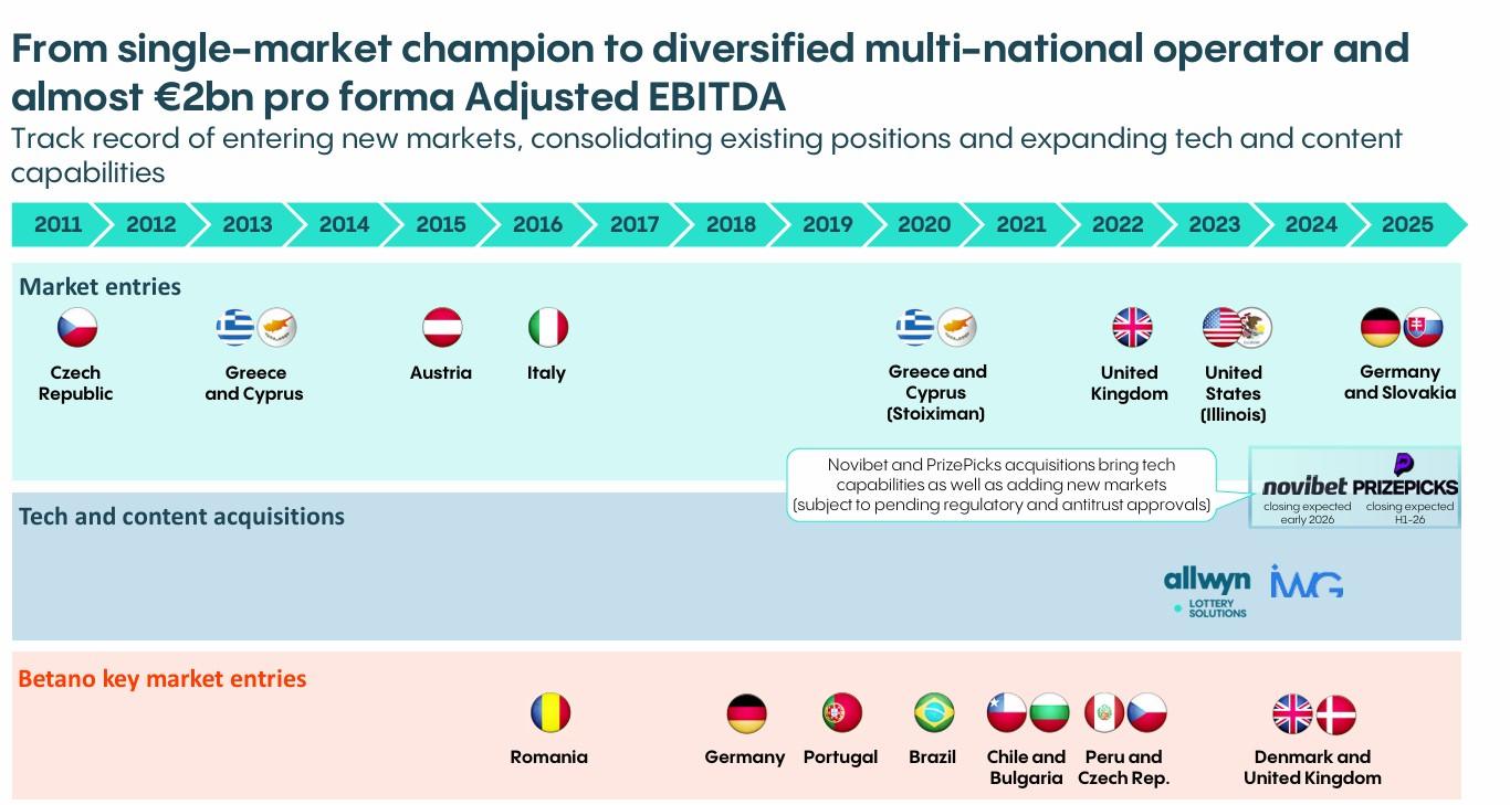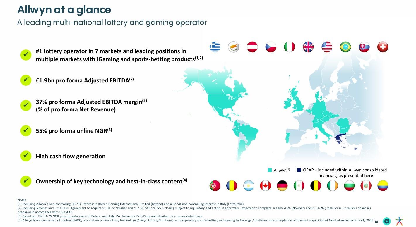 Η συνένωση με την Allwyn του Τσέχου δισεκατομμυριούχου Karel Komarek θα δημιουργήσει τη δεύτερη μεγαλύτερη εισηγμένη εταιρεία στον κλάδο τυχερών παιγνίων και διασκέδασης παγκοσμίως, με πολλές διαφοροποιημένες, ταχέως αναπτυσσόμενες και ηγετικές θέσεις αγοράς στην Ευρώπη, τις Ηνωμένες Πολιτείες και άλλες διεθνείς αγορές. Και αξία που αποτιμάται σε 16 δισ. ευρώ!