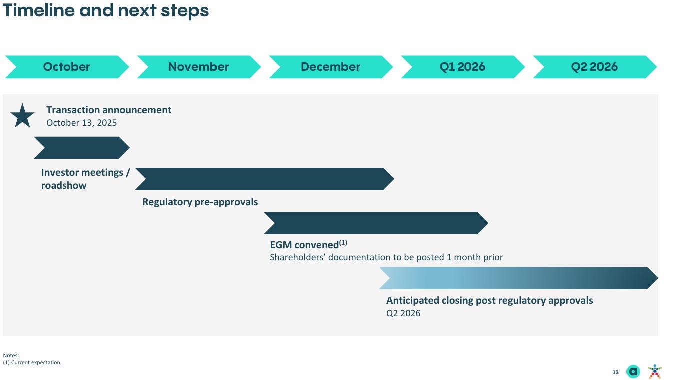 Οι μέτοχοι του ΟΠΑΠ θα κληθούν να ψηφίσουν επί της συναλλαγής σε γενική συνέλευση που αναμένεται να συνέλθει εντός του τετάρτου τριμήνου του 2025 ή το πρώτο τρίμηνο του 2026. Η ολοκλήρωση της συναλλαγής αναμένεται εντός του πρώτου εξαμήνου του 2026, υπό την προϋπόθεση της έγκρισης αυτής από τη Γενική Συνέλευση των μετόχων (με αυξημένη απαρτία και πλειοψηφία των 2/3 των ψήφων), της πλήρωσης της Αίρεσης περί του Δικαιώματος Εξόδου, της λήψης όλων των απαιτούμενων εποπτικών εγκρίσεων, συμπεριλαμβανομένης, ενδεικτικά και όχι περιοριστικά, της έγκρισης της Επιτροπής Εποπτείας και Ελέγχου Παιγνίων, και λοιπές συνήθεις προϋποθέσεις ολοκλήρωσης.