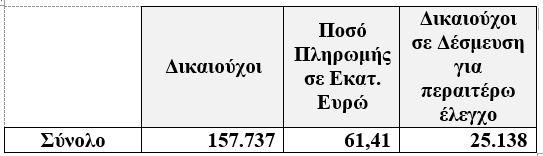 Στα ποσά αυτά, δεν περιλαμβάνονται οι αιτήσεις των υποψηφίων δικαιούχων που ελέγχονται από τη Διεύθυνση Αντιμετώπισης Οργανωμένου Εγκλήματος.