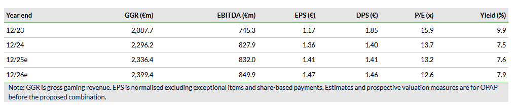 Σύμφωνα με τα στοιχεία, η διοίκηση εκτιμά ότι η συγχώνευση θα ενισχύσει την προσαρμοσμένη ανάπτυξη του EBITDA του ΟΠΑΠ για τα έτη 2024-2026, ανεβάζοντας τη σε μεσαία μονοψήφια ποσοστά, από χαμηλά μονοψήφια ποσοστά που εκτιμούσε προηγουμένως.