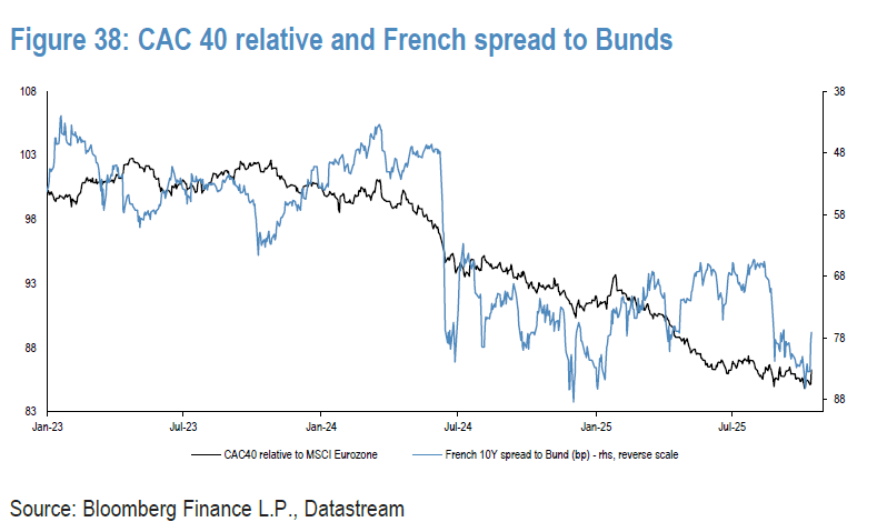 Συγκεκριμένα, οι γαλλικές μετοχές είχαν υποφέρει σημαντικά λόγω των πολιτικών εξελίξεων και των αναταραχών, όμως η JP Morgan θεωρεί ότι τώρα είναι η στιγμή να κλείσει η υστέρηση αυτή, με το εύρος των spreads να κινείται προς τη μείωση.