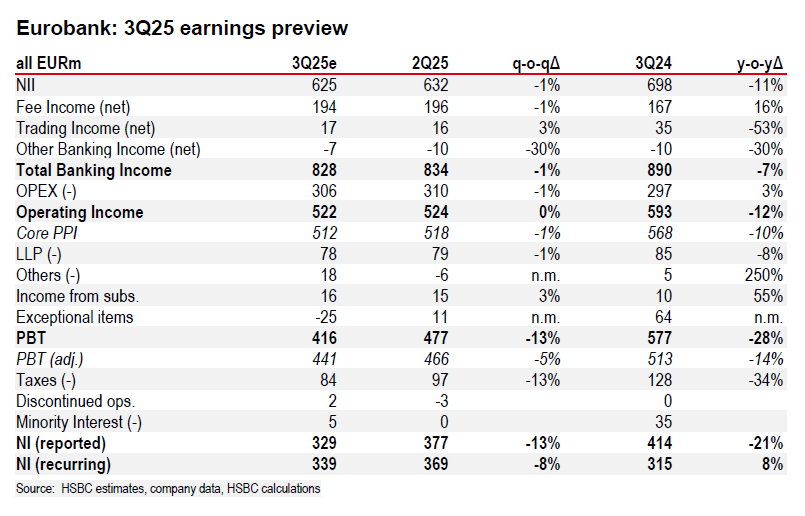 Παρόλα αυτά, η HSBC αναθεώρησε ανοδικά τις εκτιμήσεις της για τα κέρδη των ελληνικών τραπεζών, προβλέποντας πλέον ρυθμό αύξησης των κερδών ανά μετοχή (EPS CAGR) της τάξης του 9% για την περίοδο 2025-2027, κυρίως λόγω ισχυρότερων βασικών εσόδων και χαμηλότερου κόστους κινδύνου.