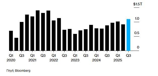 Οι παγκόσμιες αξίες συμφωνιών ξεπέρασαν το 1 τρισεκατομμύριο δολάρια στο τρίτο τρίμηνο