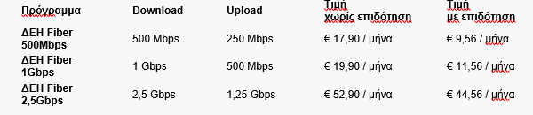 Οι νέες τιμές ΔΕΗ Fiber με Gigabit Voucher