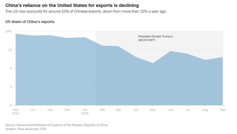 Όπως επισημαίνει και το CNN, ακόμη και πριν από τη δεύτερη θητεία του Τραμπ, οι εξαγωγές της Κίνας προς τις ΗΠΑ έβαιναν μειούμενες, κάτι που έχει επιταχυνθεί ακόμη περισσότερο τους τελευταίους μήνες.