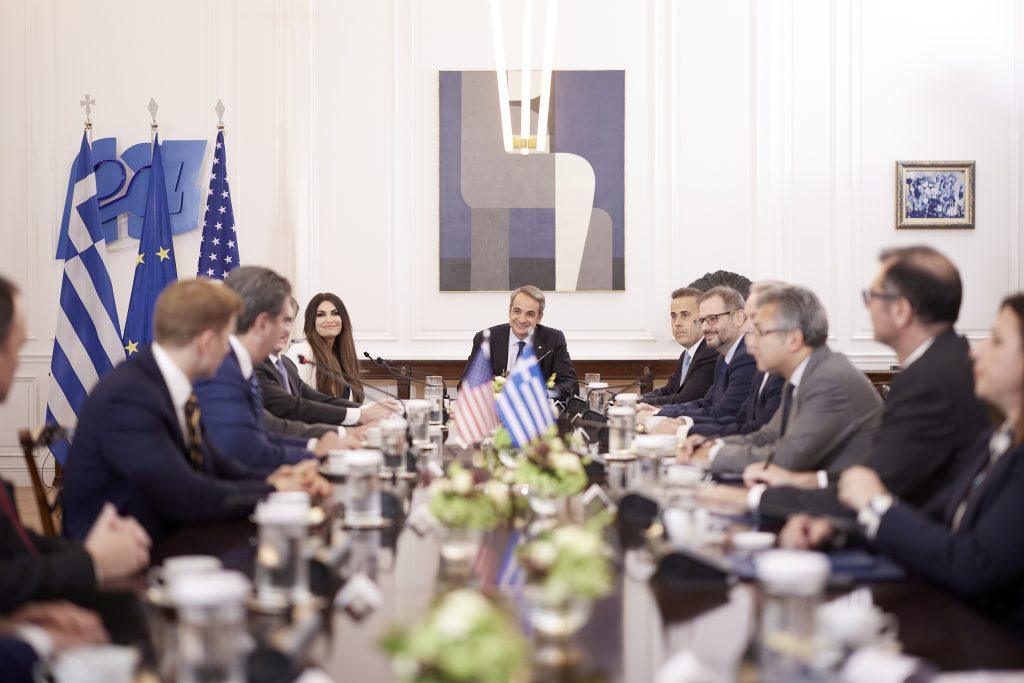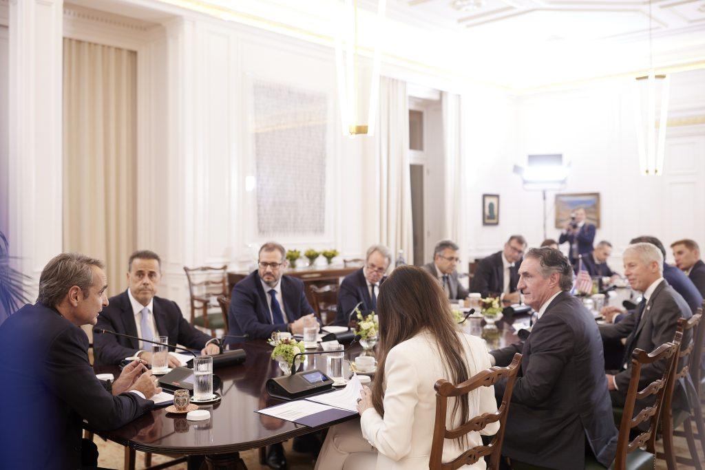 Με τους Αμερικανούς υπουργούς Εσωτερικών Νταγκ Μπέργκαμ και Ενέργειας Κρις Ράιτ συναντήθηκε ο πρωθυπουργός Κυριάκος Μητσοτάκης, στο Μέγαρο Μαξίμου.