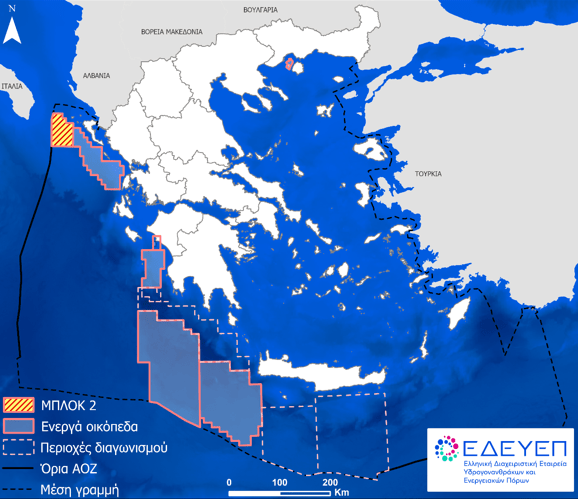 Το Μπλοκ 2 παραχωρήθηκε αρχικά στην κοινοπραξία των εταιρειών Total 50%, Edison 25% και ΕΛΠΕ 25%, τον Μάρτιο του 2018. Τον Φεβρουάριο του 2021 η Energean Hellas απέκτησε το μερίδιο 50% που κατείχε η Τotal στο Block 2 στο Βορειοδυτικό Ιόνιο και κατέστη, παράλληλα, Διαχειριστής (Οperator) στη συγκεκριμένη παραχώρηση.