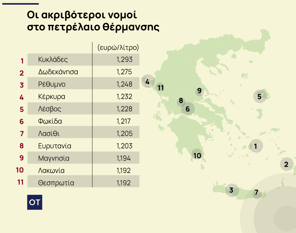 Οι ακριβότερες περιοχές στο πετρέλαιο θέρμανσης