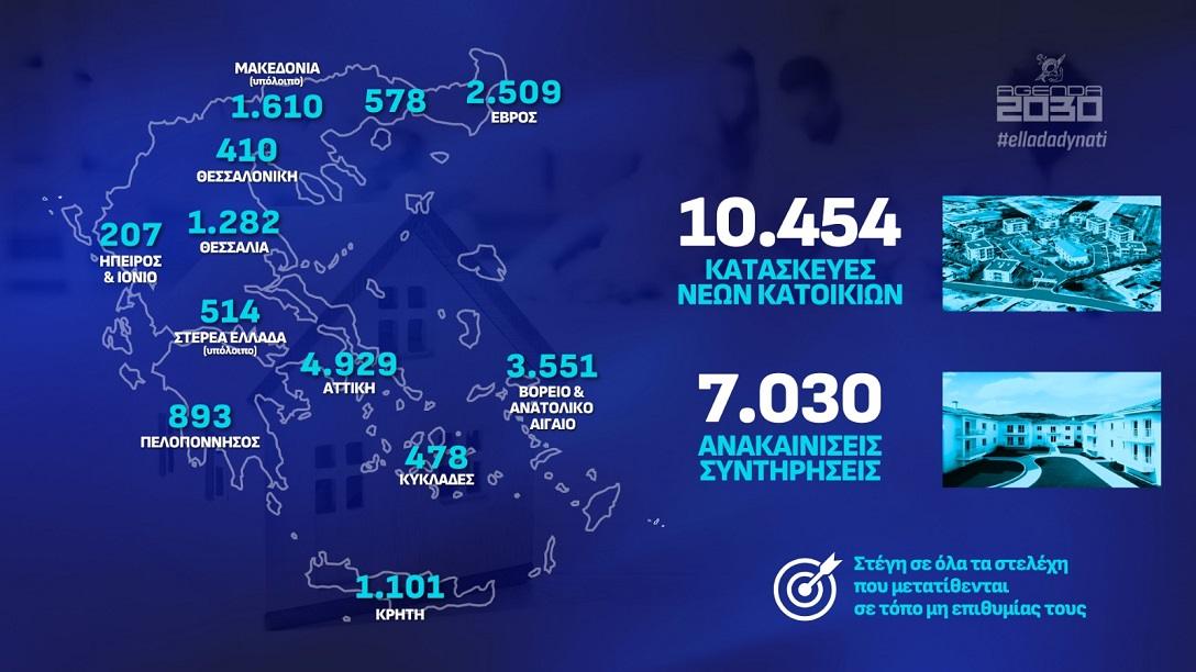 – Α’ Φάση: Ανακαίνιση – συντήρηση 2.520 κατοικιών έως το 2030 σε Θράκη, νησιά Αιγαίου και 50% Κρήτη.
