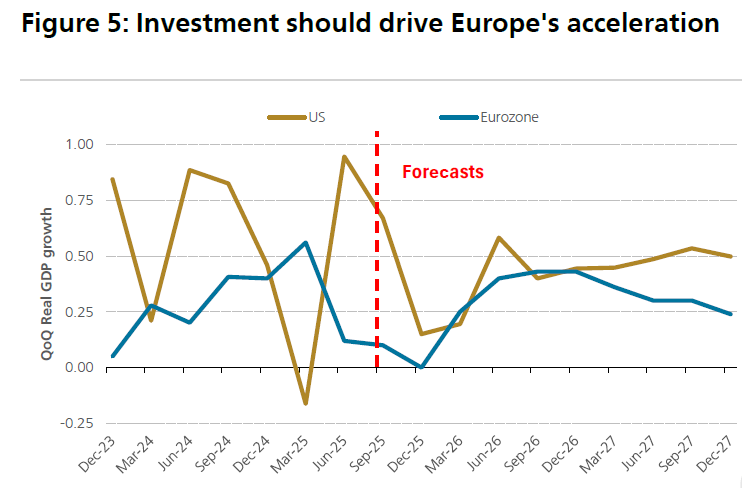 Αν και η UBS δεν αναμένει ότι οι ευρωπαϊκές μετοχές θα ξεπεράσουν σε απόδοση τις αμερικανικές, επισημαίνει ότι η ισορροπία κινδύνου-απόδοσης έχει αλλάξει υπέρ της Ευρώπης.