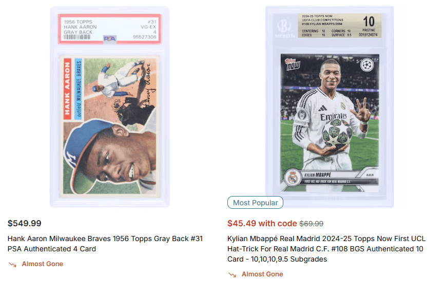 Συλλεκτικές κάρτες αθλητών που πωλούνται από την Fanatics στο διαδίκτυο