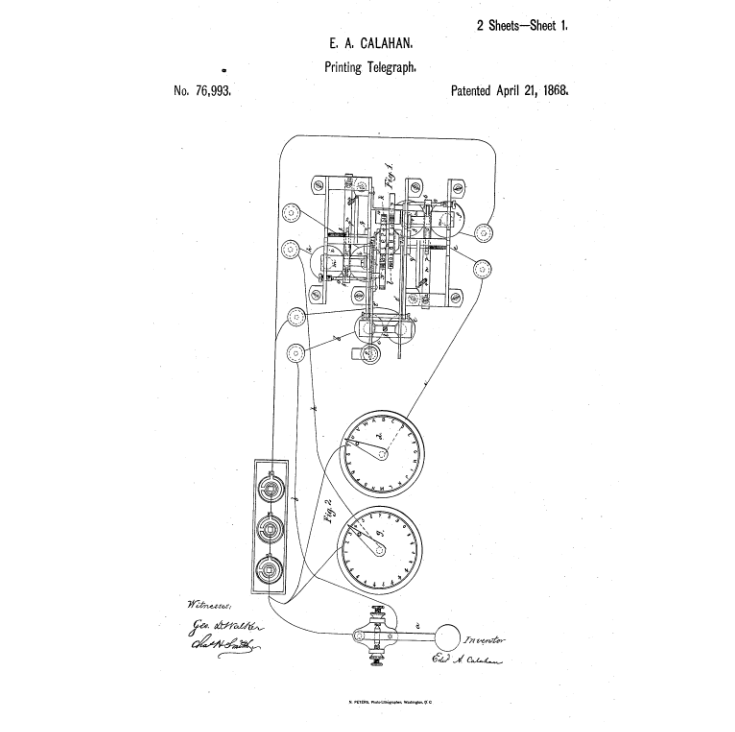 Εικόνα του ticker της μετοχής του Κάλαχαν όπως φαίνεται στο δίπλωμα ευρεσιτεχνίας του για τη συσκευή που κατατέθηκε 6 μήνες μετά την αποκάλυψή της