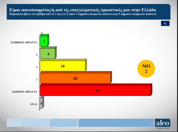 Σύμφωνα με την έρευνα, που πραγματοποιήθηκε σε συνεργασία με την Alco, το 46% των συμμετεχόντων στην έρευνα δήλωσε ότι τους ενδιαφέρει να εργαστούν στο εξωτερικό τα επόμενα χρόνια.