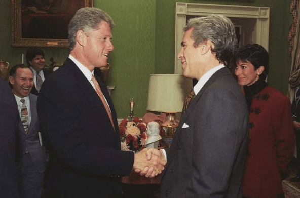 Ο Έπσταϊν, ο τότε πρόεδρος Κλίντον και στο βάθος η Μαξγουελ