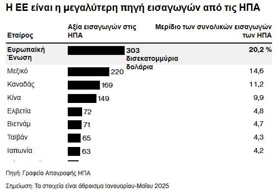 Οι Βρυξέλλες ανησυχούν ιδιαίτερα ότι το εύρος των προϊόντων που πλήττονται από τον δασμολογικό συντελεστή 50% για τα μέταλλα και οι πιθανές νέες, υψηλότερες επιβαρύνσεις σε διάφορους κλάδους θα αποδυναμώσουν τη συμφωνία εμπορίου ΕΕ-ΗΠΑ