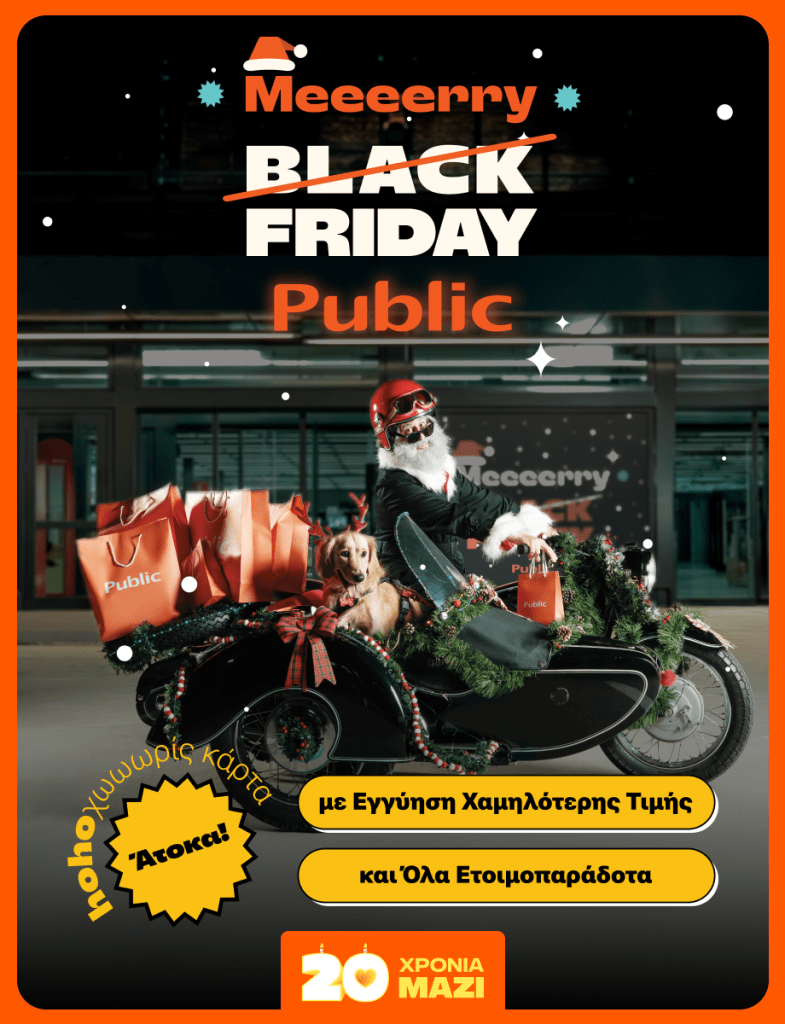 Σε ρυθμούς Black Friday κινείται ολόκληρη η αγορά και τα Public δίνουν ένα ξεχωριστό τόνο στη φετινή τους Black Friday καμπάνια με μια προσέγγιση που αποτυπώνει την εξέλιξη των καταναλωτικών συνηθειών: το Merry Friday.
