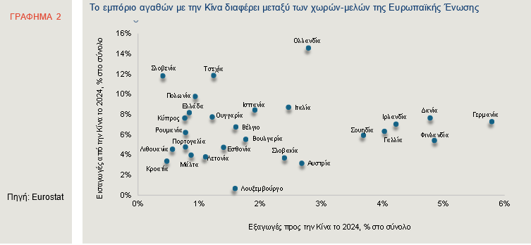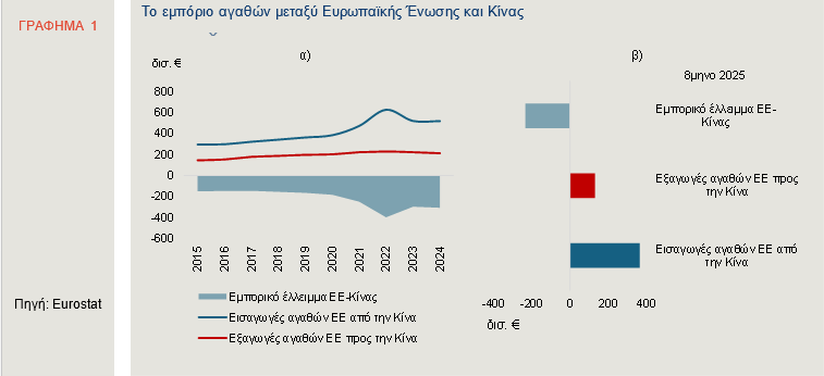 -Πέραν, όμως, από την προμήθεια κρίσιμων πρώτων υλών, στο νέο γεωπολιτικό περιβάλλον είναι επιτακτική ανάγκη η Ευρώπη να αυξήσει τον βαθμό ανεξαρτησίας της από την Κίνα σε άλλους τομείς που υστερεί τεχνολογικά, όπως οι μπαταρίες ηλεκτρικών οχημάτων, η ρομποτική και η τεχνητή νοημοσύνη (“EU-China Economic Relations and Global Imbalances”, Franco-German Council of Economic Experts, August 2025).