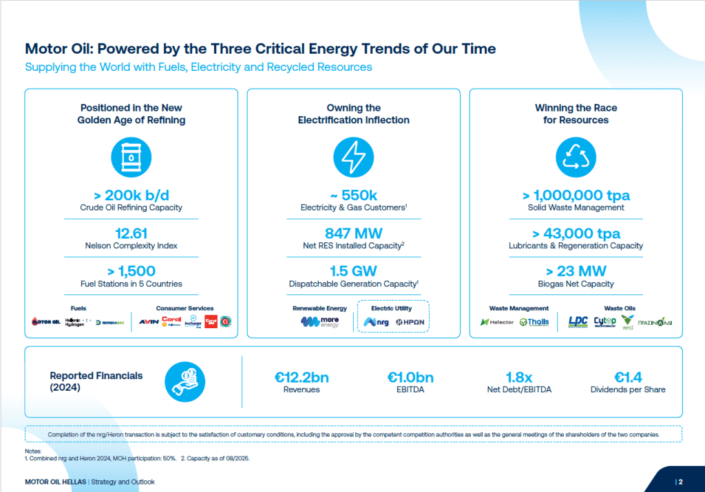 Με βάση τα παραπάνω, η Motor Oil μετασχηματίζεται από κορυφαίο downstream παίκτη σε περιφερειακό πολυ-ενεργειακό ηγέτη με διαφοροποιημένο ενεργειακό χαρτοφυλάκιο με σημαντικά περιθώρια ανάπτυξης.