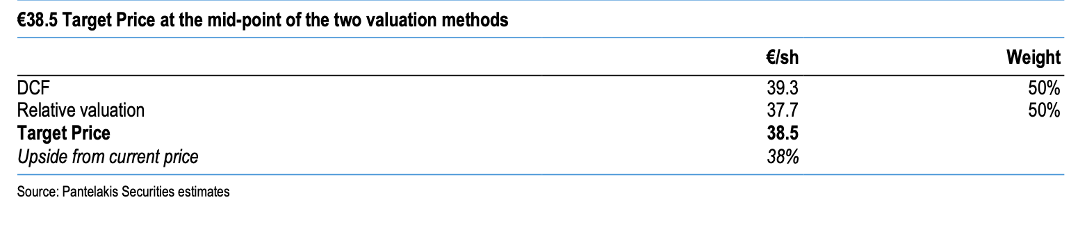 Η εταιρεία που προχώρησε σε ένα «μαραθώνιο» εξαγορών το τελευταίο έτος, συνολικού ύψους περίπου €400 εκατ., ενώ η τιμή-στόχος των 38,5 ευρώ, βασίζεται στον μέσο όρο της αποτίμησης βάση του μοντέλου προεξόφλησης των ελεύθερων ταμειακών ροών (DCF model) και της σχετικής αποτίμησης με discount 15%.