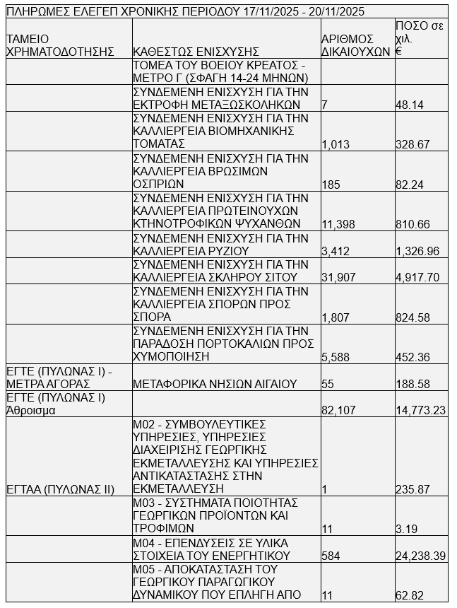Στην πληρωμή και νέων συμπληρωματικών συνδεδεμένων ενισχύσεων (αιτήσεις του 2024) σε 82.870 αγρότες προχώρησε ο ΟΠΕΚΕΠΕ, καταβάλλοντας συνολικά 46 εκατομμύρια ευρώ στους τραπεζικούς λογαριασμούς των δικαιούχων.