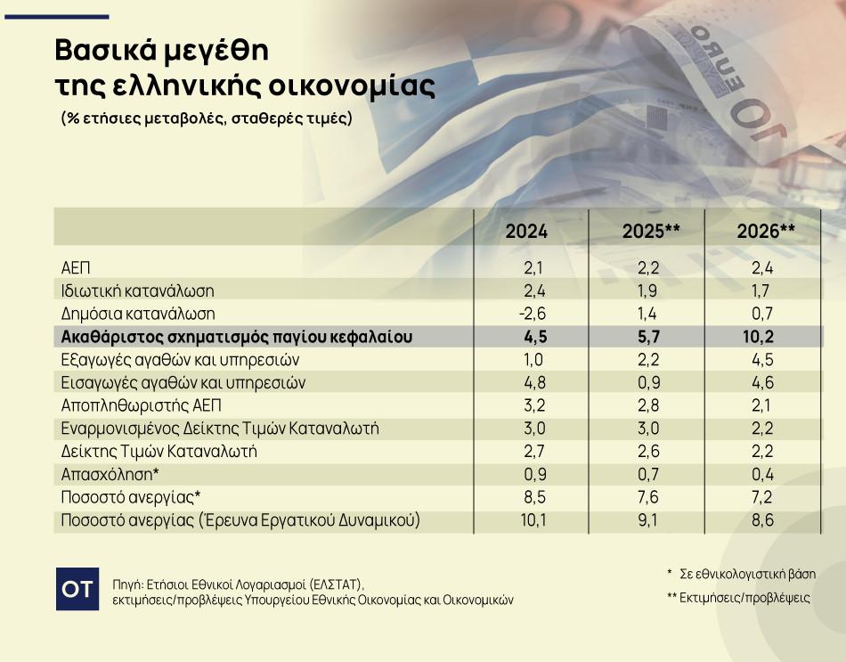 Ειδικότερα, σύμφωνα με τον προϋπολογισμό του 2026, η αύξηση των επενδύσεων προβλέπεται να αγγίξει το 5,7% το 2025, όταν κατά τη διάρκεια της κατάρτισης του προϋπολογισμού του 2025, ο πήχης είχε τεθεί στο 8,4%!