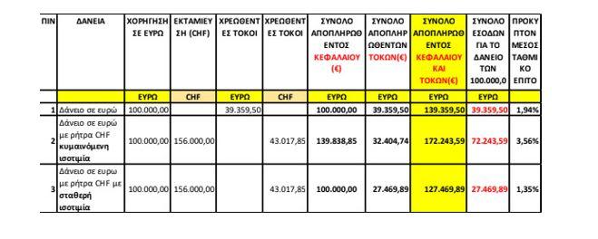 Β) δάνειο ισοδύναμο 200.000 ευρώ (312.000 CHF) καλείται να επιστρέψει 344.487,18 ευρώ