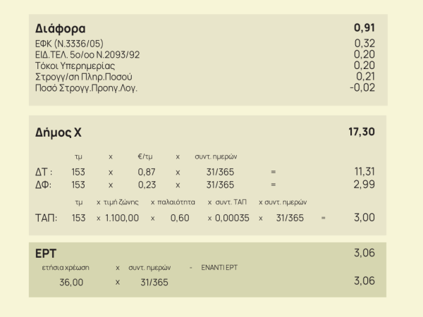Πόσο πληρώνουμε για ρεύμα και πόσο για δήμο και ΕΡΤ
