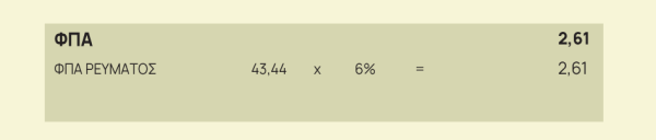 4. ΦΠΑ για το ρεύμα. Προκύπτει το ποσό με το οποίο επιβαρύνεται με ΦΠΑ η αξία της κατανάλωσης ρεύματος.