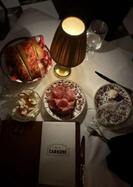 Στο Mayfair, το Carbone καλωσορίζει τους πελάτες με μπολ γεμάτα αλλαντικά και crudités (ορεκτικά από ωμά λαχανικά που σερβίρονται με σάλτσες όπως χούμους ή βινεγκρέτ).