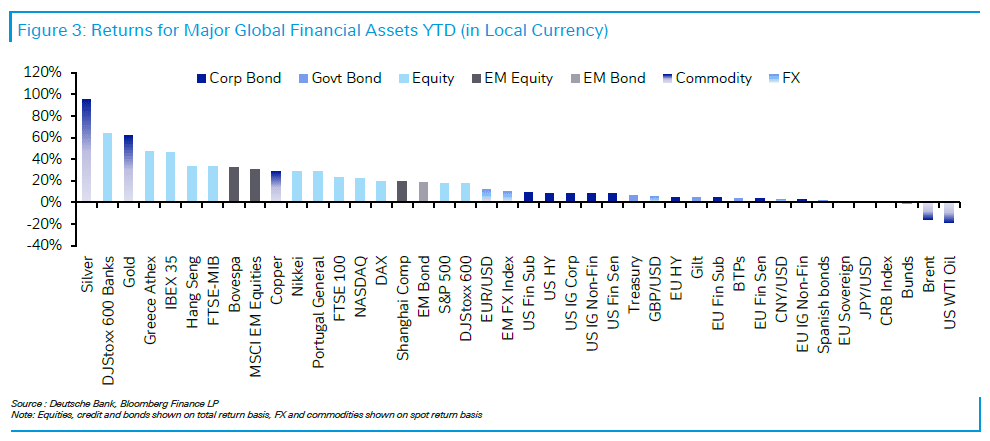 Στην τέταρτη θέση των παγκόσμιων αποδόσεων βρέθηκε το Νοέμβριο το ελληνικό χρηματιστήριο, σύμφωνα με τα στοιχεία της Deutsche Bank, με την τελευταία μηνιαία επίδοση να αποτελεί μια άτυπη παρακαταθήκη για να τελειώσει το έτος στην πρώτη πεντάδα.