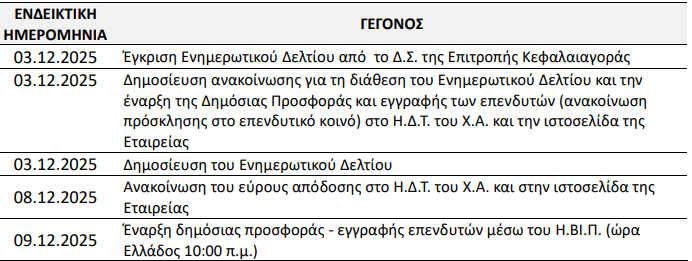 Το χρονοδιάγραμμα της Δημόσιας Προσφοράς