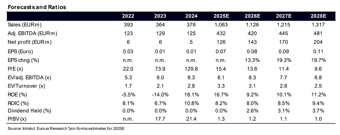 Η Euroxx εκτιμά ότι το προσαρμοσμένο EBITDA της Intralot θα ξεπεράσει τα 480 εκατ. ευρώ έως το 2028, υποστηριζόμενο από τις συνέργειες της απόκτησης της BII και από περιθώρια κέρδους που θα είναι πολύ υψηλότερα από αυτά των ανταγωνιστών.