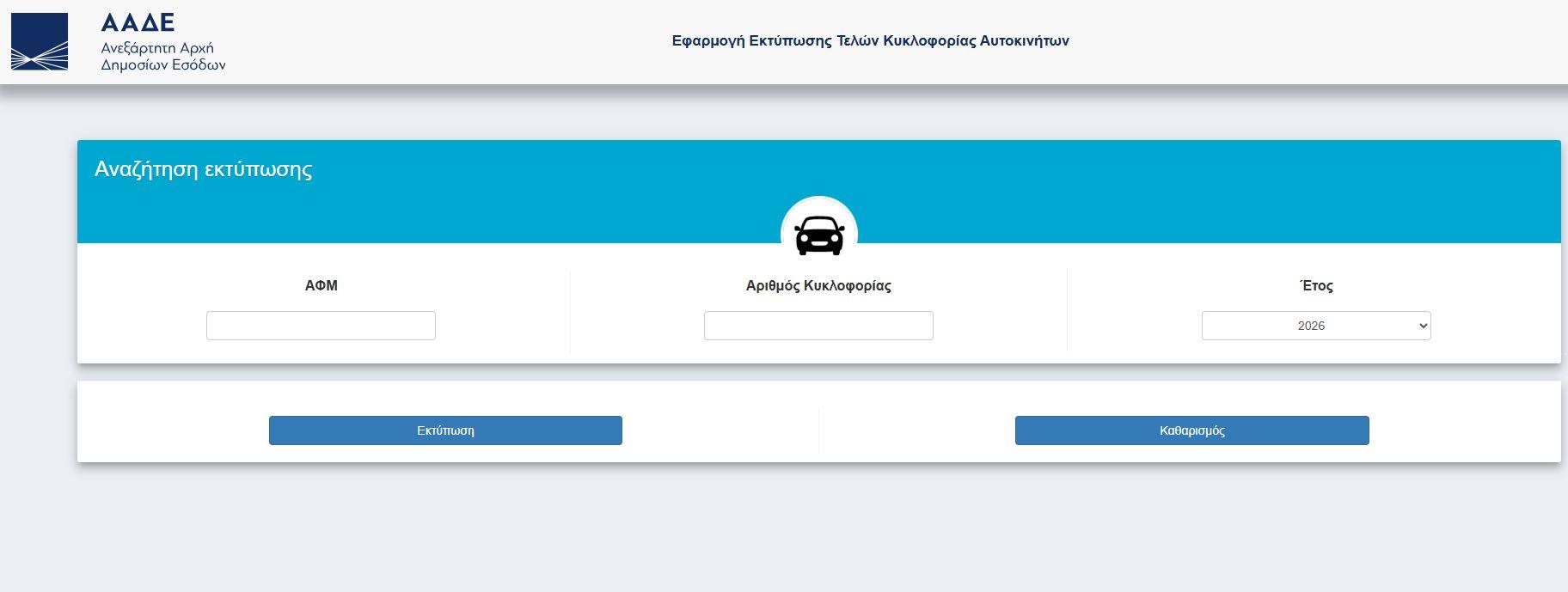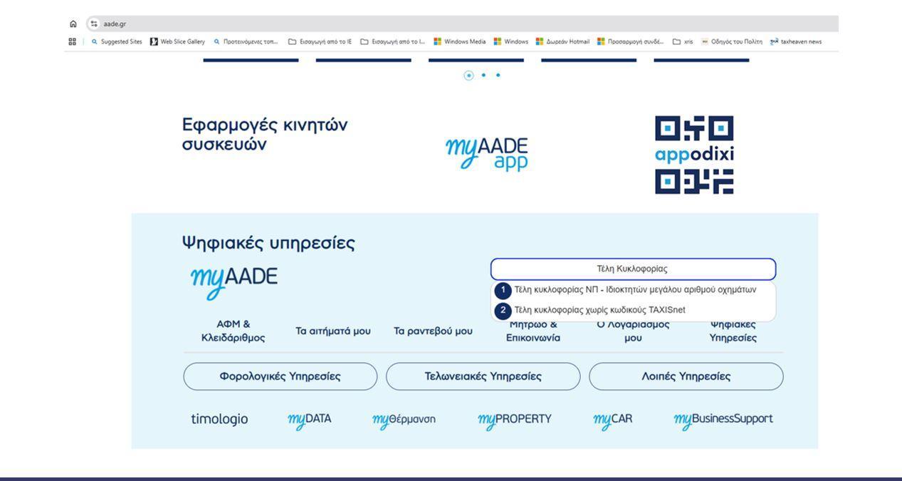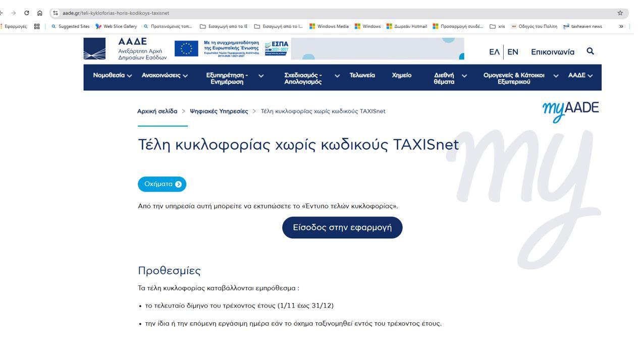 Οι ιδιοκτήτες οχημάτων μπορούν να μπουν στην ΑΑΔΕ στην εφαρμογή «Τέλη κυκλοφορίας χωρίς κωδικούς» .