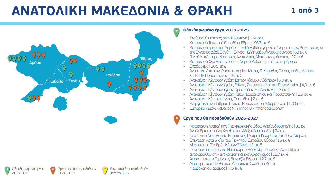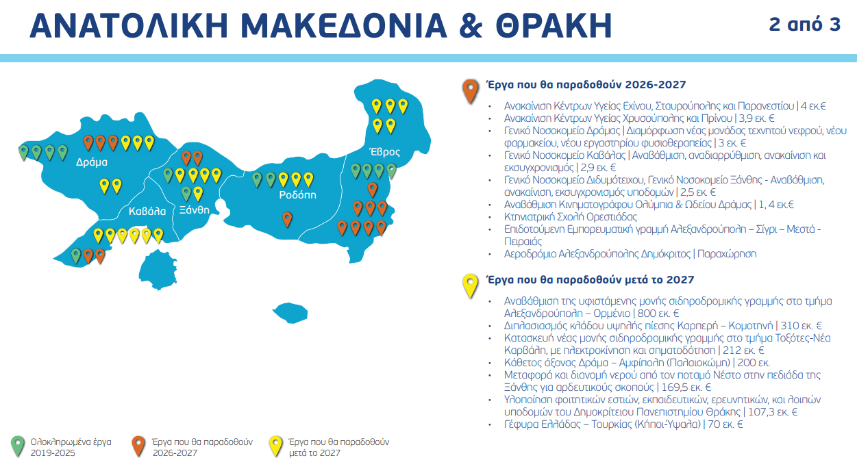 Σύμφωνα με τη σχετική απόφαση, πρόκειται για ένα για κάθε Περιφερειακή Ενότητα της χώρας, ενώ περισσότεροι από 1.000 φορείς έχουν κληθεί να συμμετέχουν οργανωμένα σε ομάδες εργασίας σε όλες τις Περιφερειακές Ενότητες. Σήμερα, στην ελληνική περιφέρεια, υλοποιούνται περισσότερα από 8.000 μικρά και μεγάλα έργα, ενώ το 2026 και το 2027 θα παραδοθούν περισσότερα από 330 εμβληματικά έργα.