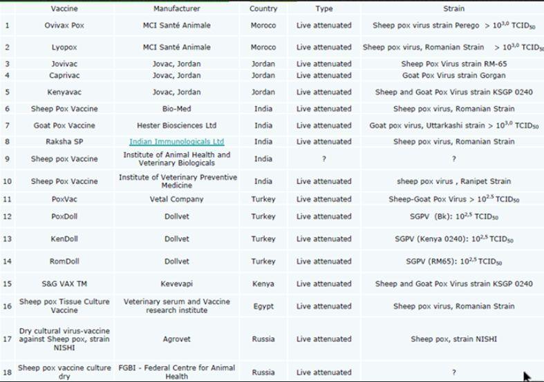 Η εισαγωγή εμβολίων της ευλογιάς των αιγοπροβάτων είναι παράνομη, καθώς δεν δεν έχει εγκριθεί οποιοδήποτε σχετικό σκεύασμα. Σύμφωνα με τον Νόμο 5184/2025 (ΦΕΚ Α’ 34/06.03.2025), ένα σκεύασμα (όπως το εμβόλιο της ευλογιάς) θεωρείται παράνομο και η διακίνηση του επιφέρει κυρώσεις όταν διατίθεται με οποιονδήποτε τρόπο χωρίς την άδεια κυκλοφορίας που απαιτείται από την κείμενη νομοθεσία. Στη χώρα μας, δεν έχουν εγκριθεί-αδειοδοτηθεί κτηνιατρικά ανοσολογικά σκευάσματα (εμβόλια) για την ευλογιά. Στην παρακάτω εικόνα υπάρχει κατάλογος εμβολίων ευλογιάς που χρησιμοποιούνται σε τρίτες χώρες.