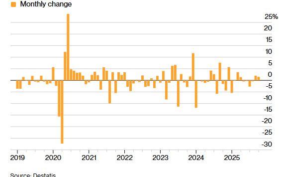 Η ζήτηση αυξήθηκε κατά 1,5% σε σχέση με τον προηγούμενο μήνα, ο οποίος αναθεωρήθηκε σημαντικά προς τα πάνω, παρουσιάζοντας αύξηση 2%, σύμφωνα με την Destatis την Παρασκευή. Το αποτέλεσμα ήταν πολύ υψηλότερο από τη μέση εκτίμηση 0,3% σε έρευνα της Bloomberg.