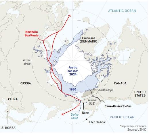 Αναμένεται ακόμη μεγαλύτερη κίνηση την άνοιξη του 2026, όταν θα λιώσει ο πάγος. Καθώς η πολική παγωμένη…κάπα υποχωρεί, η Αρκτική γίνεται λιγότερο απομακρυσμένη και απρόσιτη, σύμφωνα με δημοσίευμα του Economist.