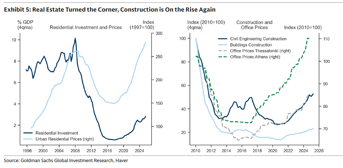 Η πολυετής καθίζηση στον κλάδο των κατασκευών φαίνεται να έχει παρέλθει, με ισχυρή ανάκαμψη στις τιμές κατοικιών και επαγγελματικών ακινήτων από το 2022. Ωστόσο, απαιτείται προσεκτική διαχείριση ώστε η ανάκαμψη να μην οδηγήσει σε υπερβολική άνοδο τιμών, όπως στις αρχές της δεκαετίας του 2000 και να μεταφραστεί σε διατηρήσιμο επενδυτικό κύμα.