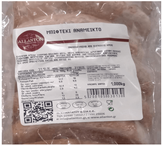 Ο Ε.Φ.Ε.Τ. και συγκεκριμένα η Περιφερειακή Διεύθυνση Πελοποννήσου, κατά τη διενέργεια ελέγχων στο πλαίσιο του Προγράμματος «Επίσημος έλεγχος για την παρακολούθηση μικροβιολογικών κριτηρίων ασφάλειας τροφίμων», προέβη σε δειγματοληψία τροφίμου με τα στοιχεία: « ΜΠΙΦΤΕΚΙ ΚΑΤΕΨΥΓΜΕΝΟ», με κωδικό παρτίδας: 31102025 και ημερομηνία ανάλωσης έως 31.10.2026, που παράγεται από