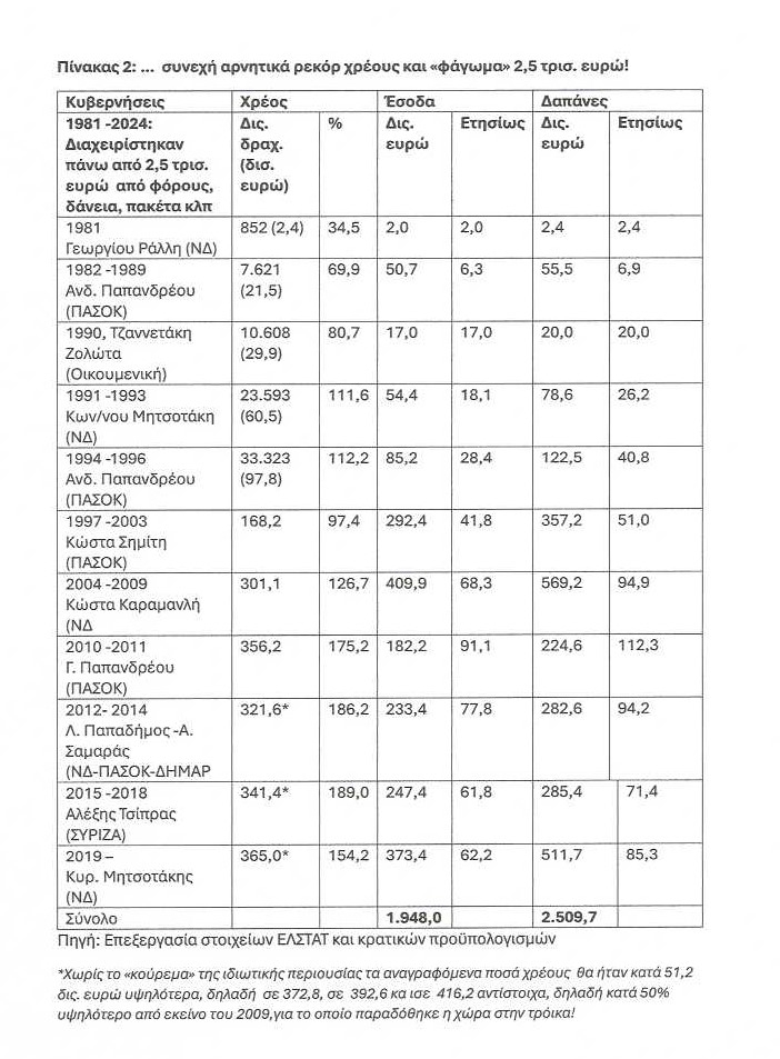 Πρόκειται για μακρόχρονη περιπέτεια της πορείας Ελλάδος ως μέλους της Ευρωπαϊκής Ένωσης, η οποία, μολονότι ξεκίνησε με πολλούς αίσιους οιωνούς, οι γνωστές κομματικές σκοπιμότητες ωθούσαν τους εκάστοτε διαχειριστές των τυχών της χώρας και του ελληνικού σε ανέμελες τακτικές, τις οποίες πλήρωσε ακριβά η χώρα. Όλα αυτά τεκμηριώνονται από τα επίσημα στοιχεία του παρατιθέμενου πίνακα 2.
