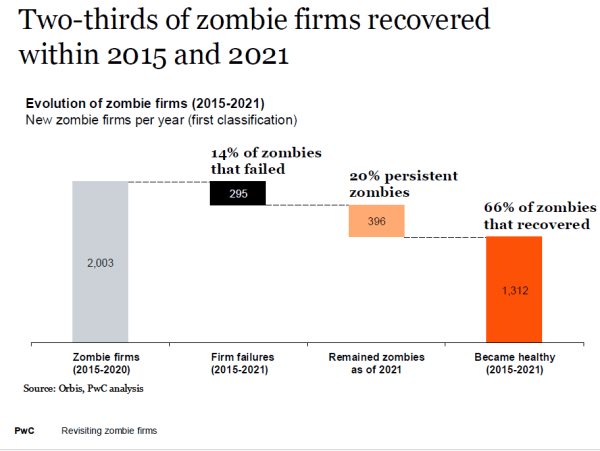 Τα ευρήματα είναι ενδεικτικά: από τις περίπου 2.000 επιχειρήσεις που καταγράφονταν ως zombies την περίοδο 2015-2021, οι δύο στις τρεις κατάφεραν τελικά να επιστρέψουν σε τροχιά κανονικής λειτουργίας.