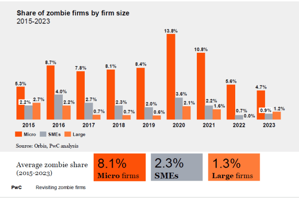 Σύμφωνα με την PwC, την περίοδο 2015-2020, χιλιάδες επιχειρήσεις βυθίστηκαν σε έναν οικονομικό λήθαργο: χαμηλές ή φθίνουσες πωλήσεις, αρνητικές αποδόσεις κεφαλαίων, δανεισμός που δεν μπορούσε να εξυπηρετηθεί χωρίς διαρκείς αναστολές και ρυθμίσεις.