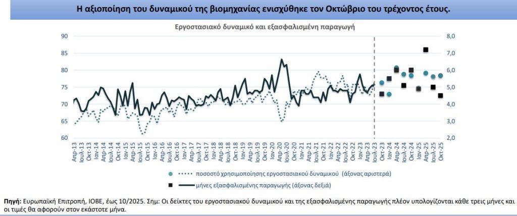 Το ποσοστό χρησιμοποίησης εργοστασιακού δυναμικού ενισχύθηκε στο 78,4% τον Οκτώβριο (από 78,1% τον Ιούλιο), με την εξασφαλισμένη παραγωγή να διαμορφώνεται στους 4,5 μήνες από 5,0 μήνες τον Ιούλιο.