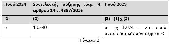 Η ανταποδοτική σύνταξη (μικτό ποσό) αυξάνεται επίσης κατά 2,4%, με εφαρμογή της σχέσης