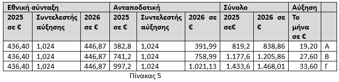 - αύξηση κατά 2,4% των συντάξεων από 1.1.2026 και