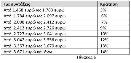 Η νέα φορολογική κλίμακα, με την οποία θα γίνει η παρακράτηση του φόρου των συνταξιούχων είναι η παρακάτω: