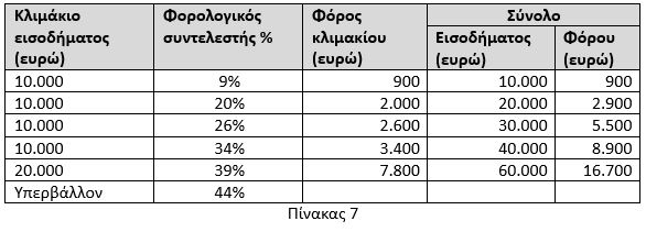 Κλίμακα φόρου για φορολογούμενους (μισθωτούς/συνταξιούχους/ατομικές ) άνω των 30 ετών χωρίς τέκνα