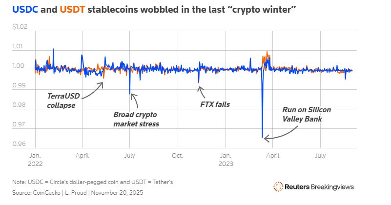 Η κατάσταση δεν θα μπορούσε να είναι πιο διαφορετική το 2026. Ο Ντόναλντ Τραμπ και η οικογένειά του είναι βαθιά εμπλεκόμενοι με τα κρυπτονομίσματα. Η απώλεια εμπιστοσύνης σε ένα σημαντικό stablecoin θα μπορούσε να βλάψει την αγορά του αμερικανικού Δημοσίου. Αν το επόμενο έτος συμβεί μια άλλη κατάρρευση τύπου FTX, αναμένεται να παρέμβει ο σημερινός κάτοχος του Οβάλ Γραφείου.